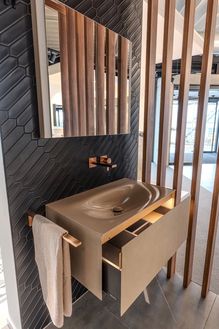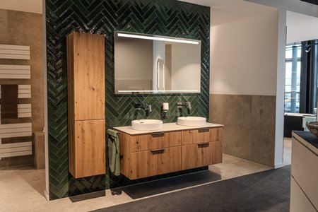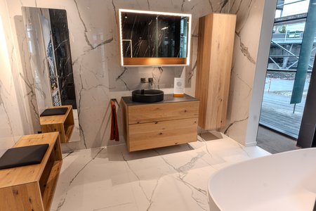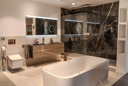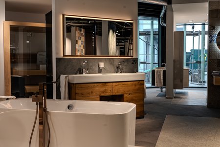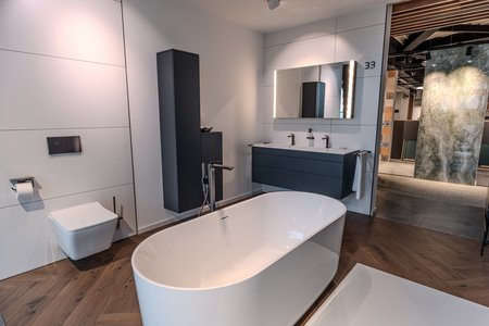 Kunden dürfen sich freuen auf moderne Bad-Inspirationen, vielfältige Komplettbäder und zahlreiche Einzelelemente wie Waschtische fürs Gästebad. Digitale und smarte Lösungen sowie neueste Badtrends wie Dusch-WCs und Sonnenduschen, werden ebenso präsentiert wie exklusive Designbäder und individuell gefertigte Badelemente aus Massivholz (z.B. Keuco / Team 7 - Edition Lignatur).